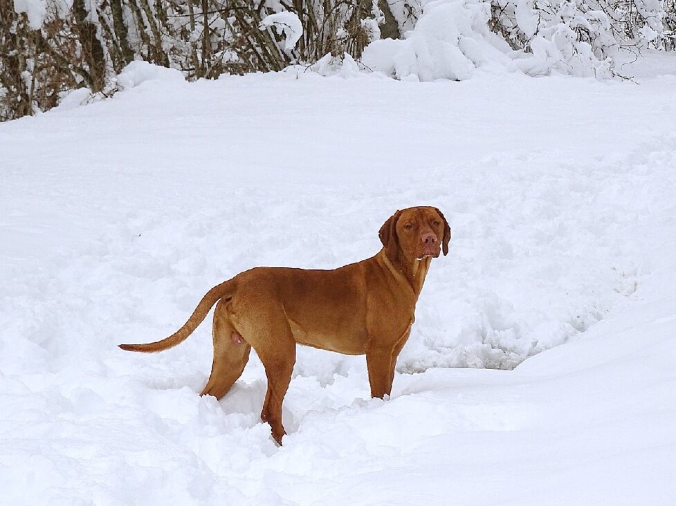 Con un peso di 28 Kg, ed una altezza di 60 cm al garrese, è particolarmente muscoloso e potente; esprime un ampio torace a botte, che tanto ricorda i Bracco Ungherese - Magyar Vizsla nelle foto di fine '900.