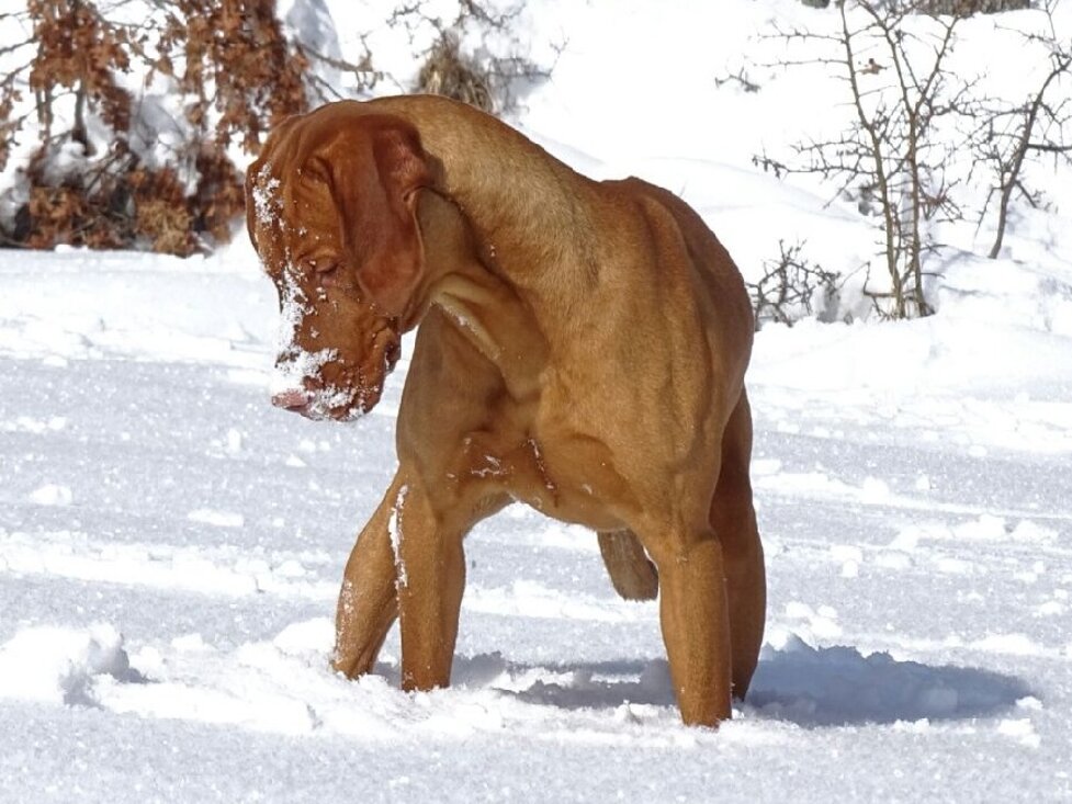 Carattere dolce e tranquillo, era chiamato “orso” dai suoi allevatori, e come tutti gli orsi se si arrabbia è terribile: quello che è suo è suo, non si discute!!! Con gli umani è dolsissimo e di indole giocosa: un vero Magyar Vizsla. Ha una fame atavica, e mangia con una foga che raramente ho potuto osservare in un Bracco Ungherese.